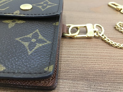 カバンなどにつけて落とさない様にする丈夫なウォレットチェーンは、今回は傷なども少なかったです。