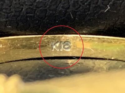 こちらでしたらK18と刻印されていますので金の純度75.0%のリングであることが分かります。