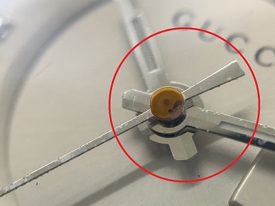 こちらの時計は防水仕様ではありませんので、恐らく放置したことにより内部の精密機械も錆ついているであろう、と考えられます。