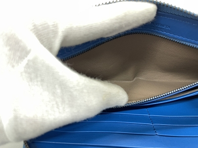 本日のラウンドファスナー財布もボッテガのアイコンであるイントレチャートになっており、ブラックやブラウンがブランドのイメージカラーな印象がありますが非常に鮮やかなブルーでクールかつスタイリッシュなお財布に仕上がっていますね!
