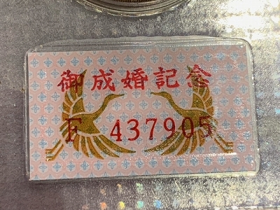 皇太子殿下の結婚の儀を記念して、平成5年9月9日に発行された記念金貨です。