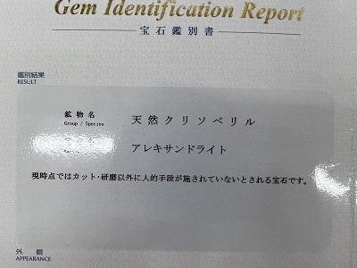 本日お持ち込みいただいたアレキサンドライトは大きな傷なども無く非常に良いコンディションでした!