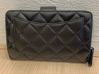 今回持ち込みいただけた商品はシャネルの中でもとても人気のある、ブラックのマトラッセ折り畳み財布になります。