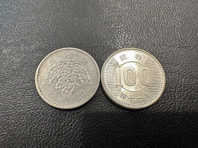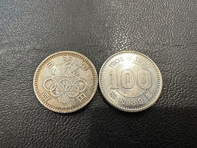 1000円銀貨と同じく1964年に発行された100円銀貨です。