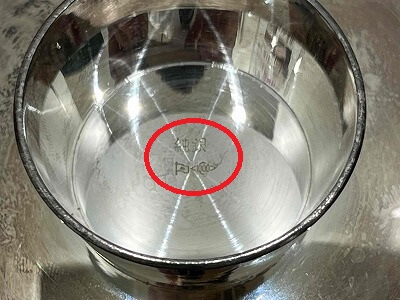 杯の高台(器の底に付いている台)の裏を確認したところ、純銀(SV1000)の刻印を確認できました。