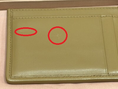 ですが裏面に少し擦り傷が見られました。ナッパレザーは耐久性が高くないので注意が必要です。