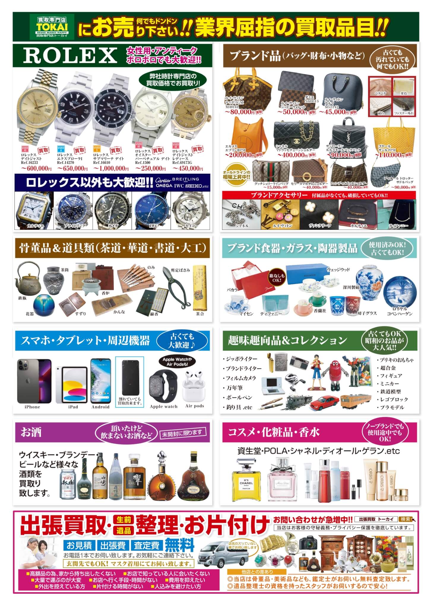 ブランドバッグ・財布、時計、香水、お酒、スマートフォン、