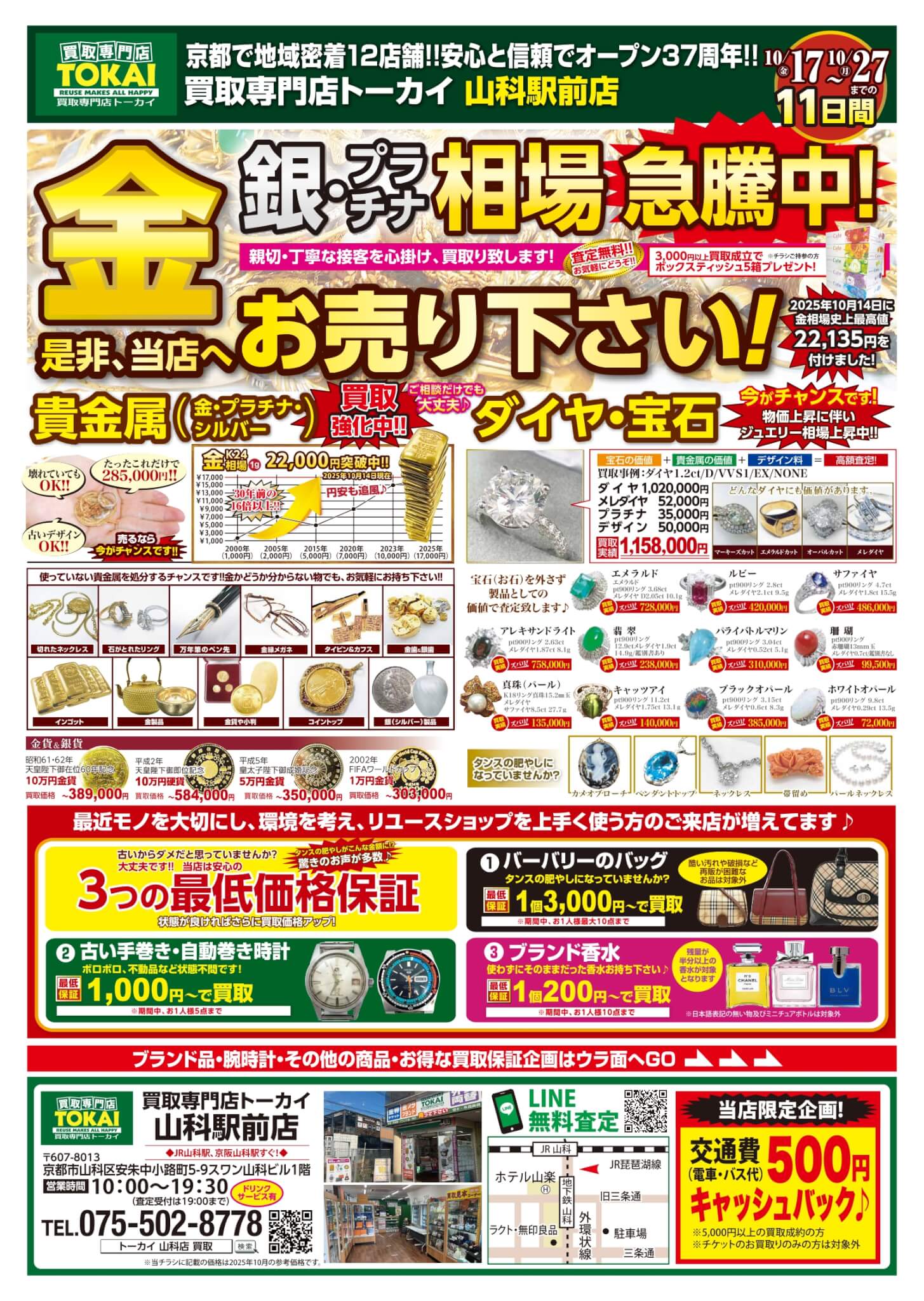 【山科駅前店新着】10/17折込チラシ『金・銀・プラチナ相場急騰中!!高価買取祭』開催中です!