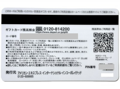 現在【百貨店ギフトカード】はオンラインストアでのご利用はできず、店頭に限られていますが、今後仕様変更されないとも限らないこと、オンラインサイトでの利用が開始された場合は「カード番号」と「PIN番号」さえあれば利用可能となる可能性が高い(代表例:図書カードNEXT、スターバックスカード…)などを考慮しての買取条件となります。
