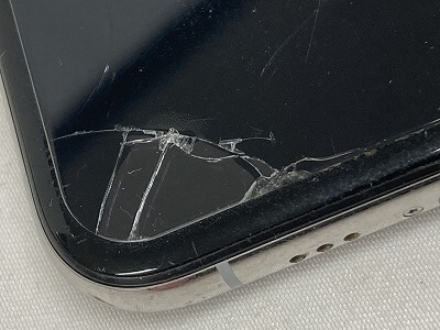 さて、今回のiPhone、残念ながら画面割れが見られました。背面のカメラ付近にも割れがあるなどしていましたが、この状態でも買取は可能です。