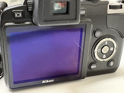 2008年製の古いデジカメで、全体的に使用感と液晶パネルに目立つ傷がありました。