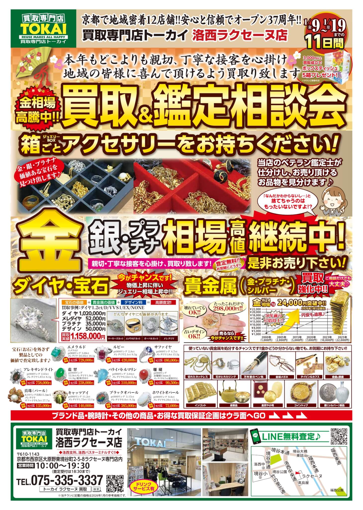 【洛西ラクセーヌ店新着】1/9折込チラシ『金相場高騰中!!買取&鑑定相談会』開催中です!