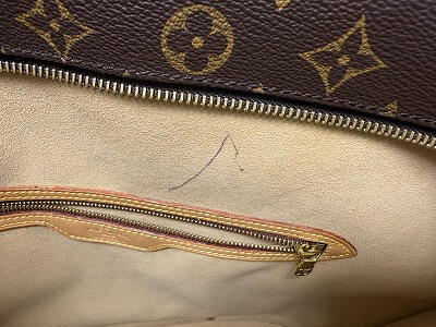 長年使用されていたバッグで、ヌメ革にはひび割れ、バッグ内側はペン汚れなど使用感がありましたが、使用感があってもしっかりとお値段をつけさせていただきました。