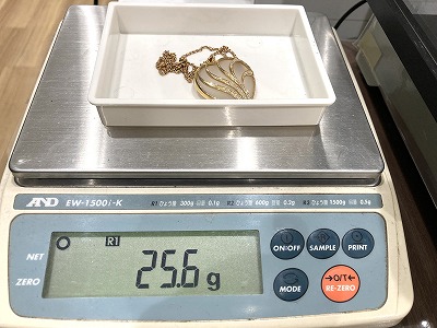 また、貴金属製品の場合、お品物自体の重量も確認させていただきます。