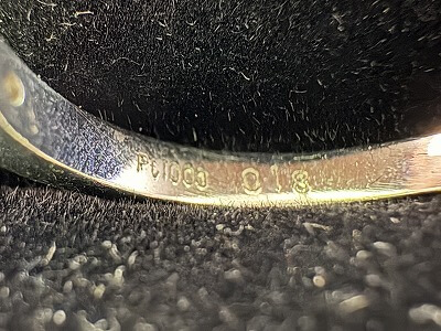 プラチナリングはPt850やPt900くらいの純度の品をよく見かけますが、今回のリングは「Pt1000」という純プラチナの刻印が確認できました。