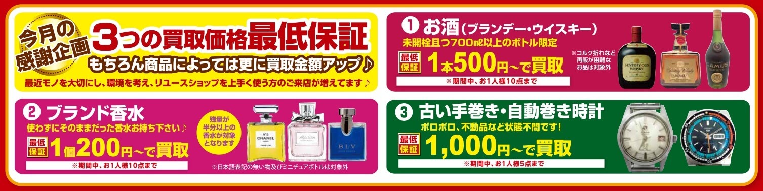 今月の感謝企画として下記3商品で「最低価格保証」を実施いたします!