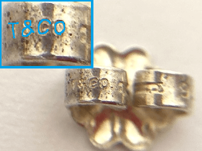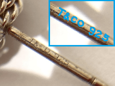 ピアスのポスト(針)とキャッチに、「T&CO」「925」という2種類の刻印が確認できました。