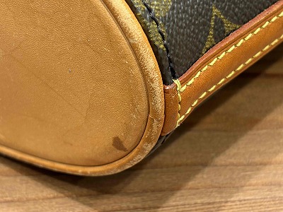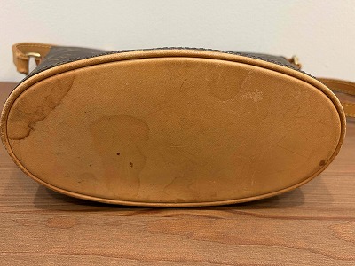 外装は全体的に良好な状態でしたが、バッグの底に目立つシミが見られました。